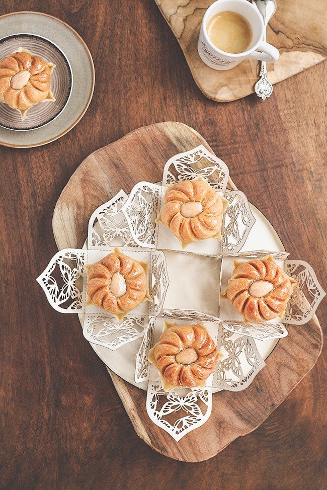 Aussi appelé croquant, ce biscuit sec est parfumé à la vanille avec des graines de sésame (avec ou sans amande).