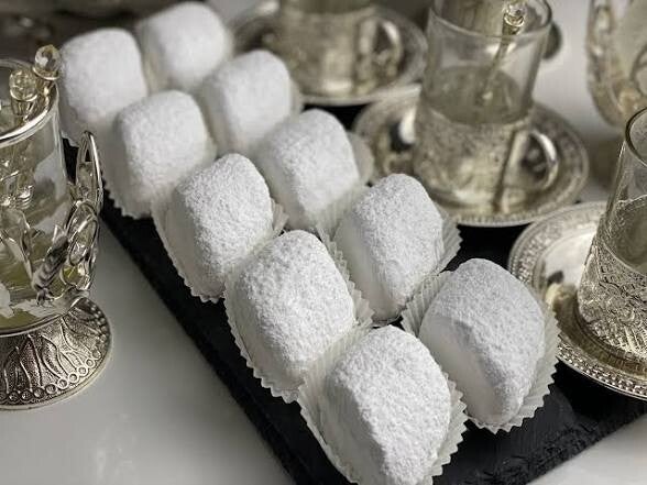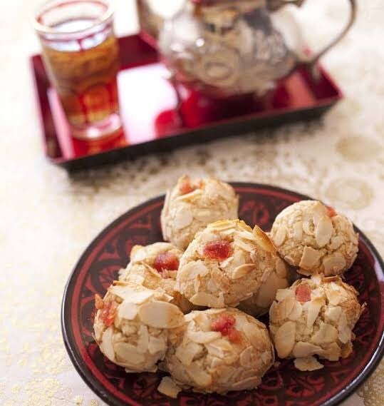 Aussi appelé "corne de gazelle " est une fine pâtisserie à base d'amande parfumée à la fleur d'oranger parsemée de sucre glace.